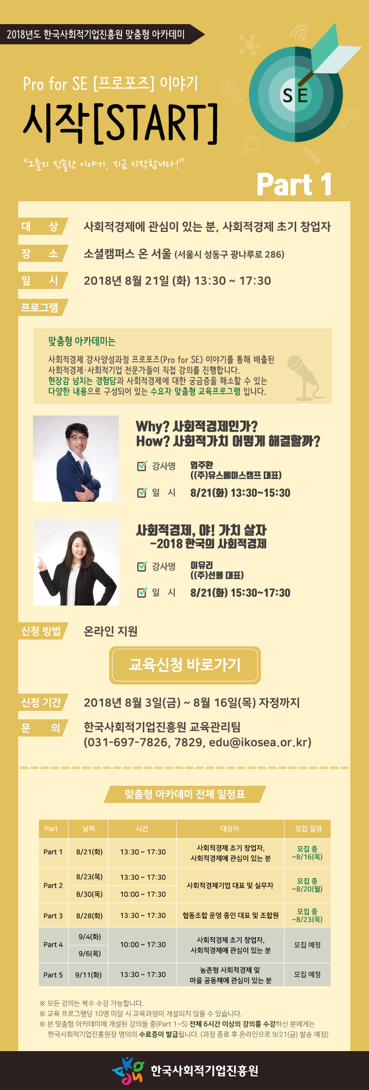 Pro For SE[프로포즈] 이야기 START[시작]은 사회적기업 강사양성과정 프로포즈(Pro for SE) 이야기를 통해 배출된 사회적기업·사회적경제 전문가들이 직접 강의를 진행합니다.